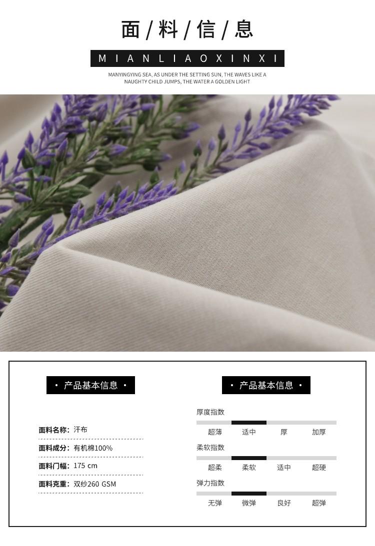 有機全棉汗布家居服T恤衣物雙紗260GSM 透氣柔軟無刺激
