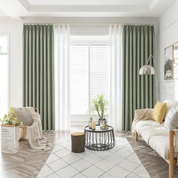 全遮光窗簾日系抹茶綠壓縐窗簾布料客廳臥室防曬隔熱遮陽窗簾產(chǎn)品