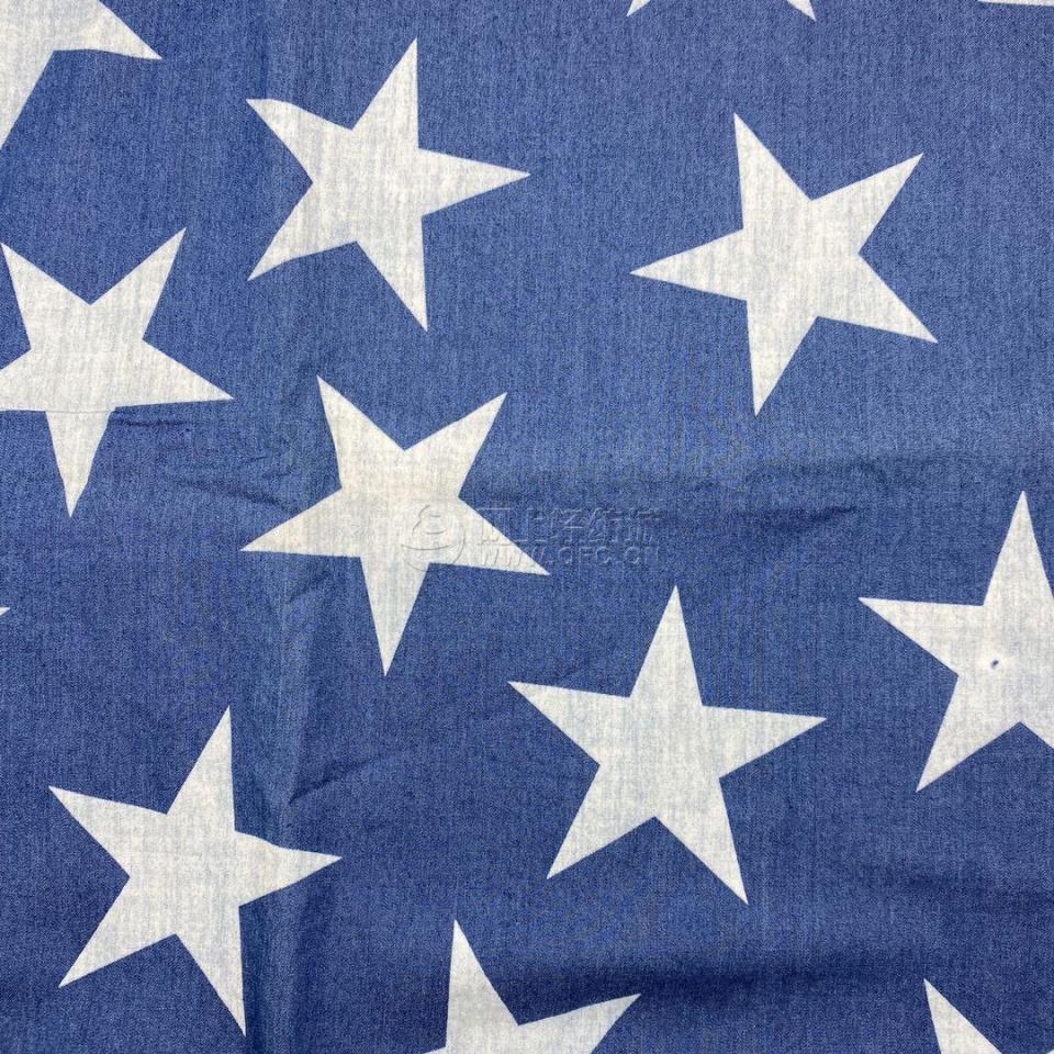 現(xiàn)貨36S全棉 拔印印花10CM五角星 服裝面料 普洗牛仔布