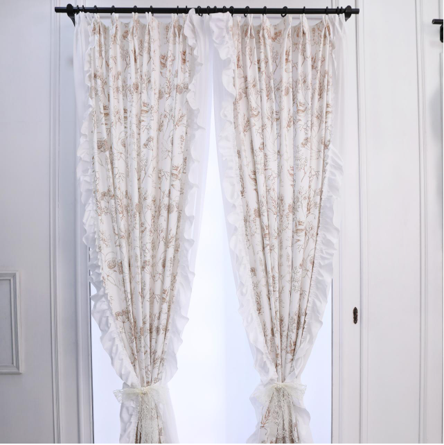 新印花窗簾咖色花邊滌綸全屋定制拼接客廳臥室遮光窗簾1906#